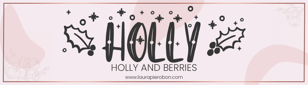 Holly and Berries – Ricco di dettagli natalizi, con agrifoglio e bacche che decorano le lettere. Perfetto per grafiche e card artigianali.