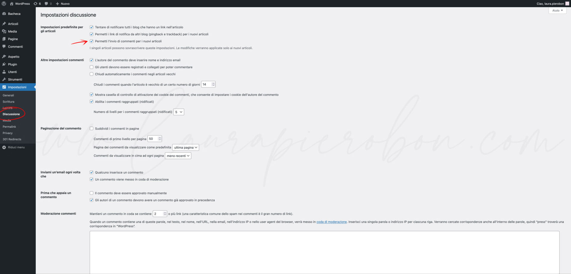 - Togli la spunta a “Permetti l’invio di commenti per i nuovi articoli”