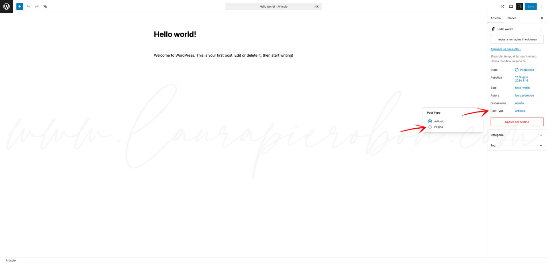 Hai creato per sbaglio una pagina che doveva essere un articolo o il contrario? Nessun problema. Puoi convertire le pagine in articoli e viceversa.