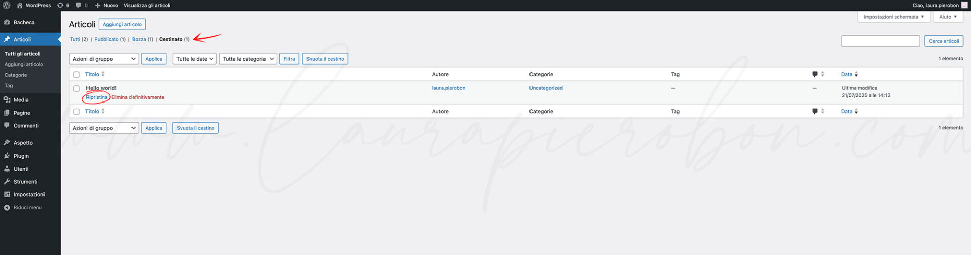 Come recuperare pagine e articoli cestinati