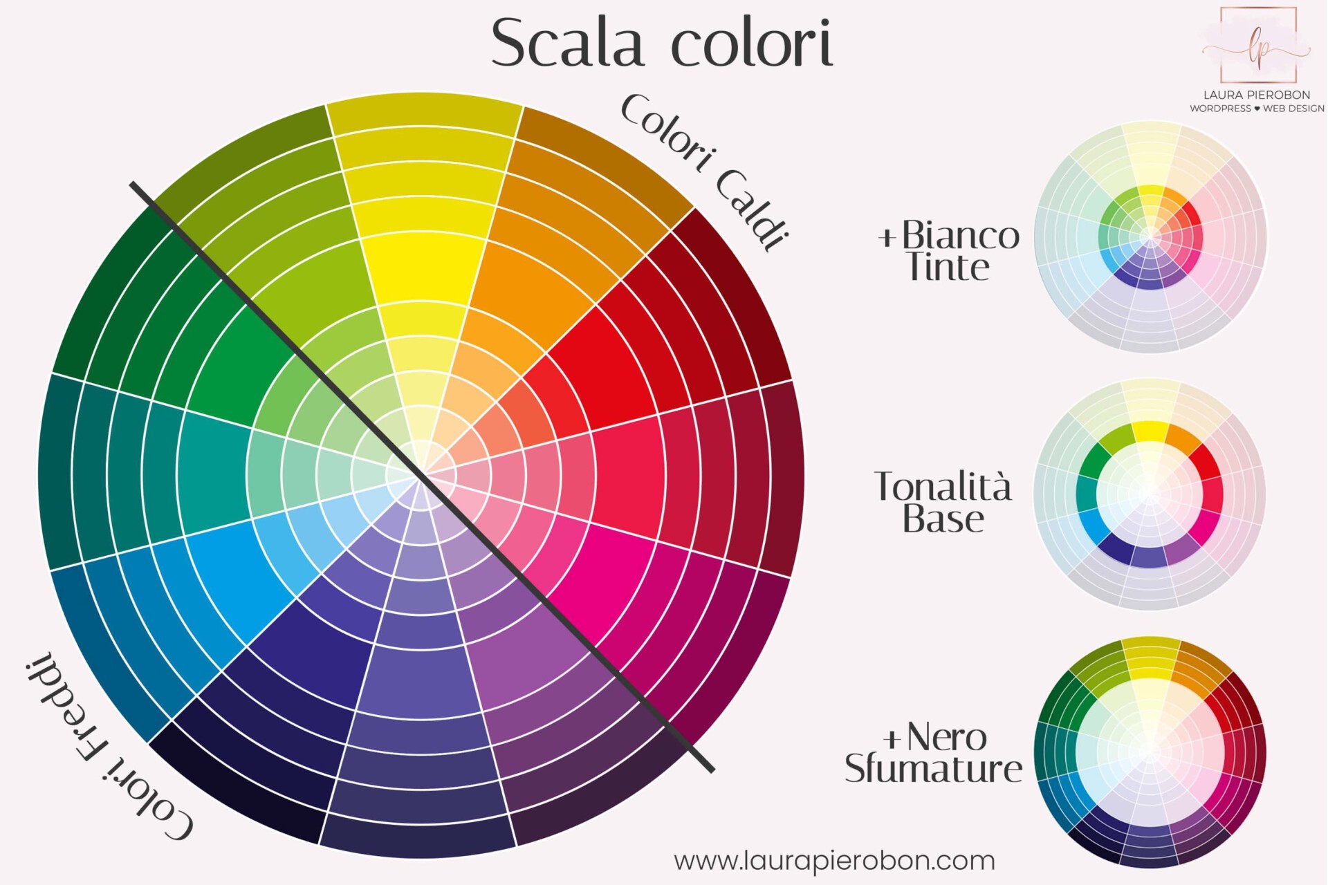 Un’altra distinzione utile è quella tra colori caldi e freddi.